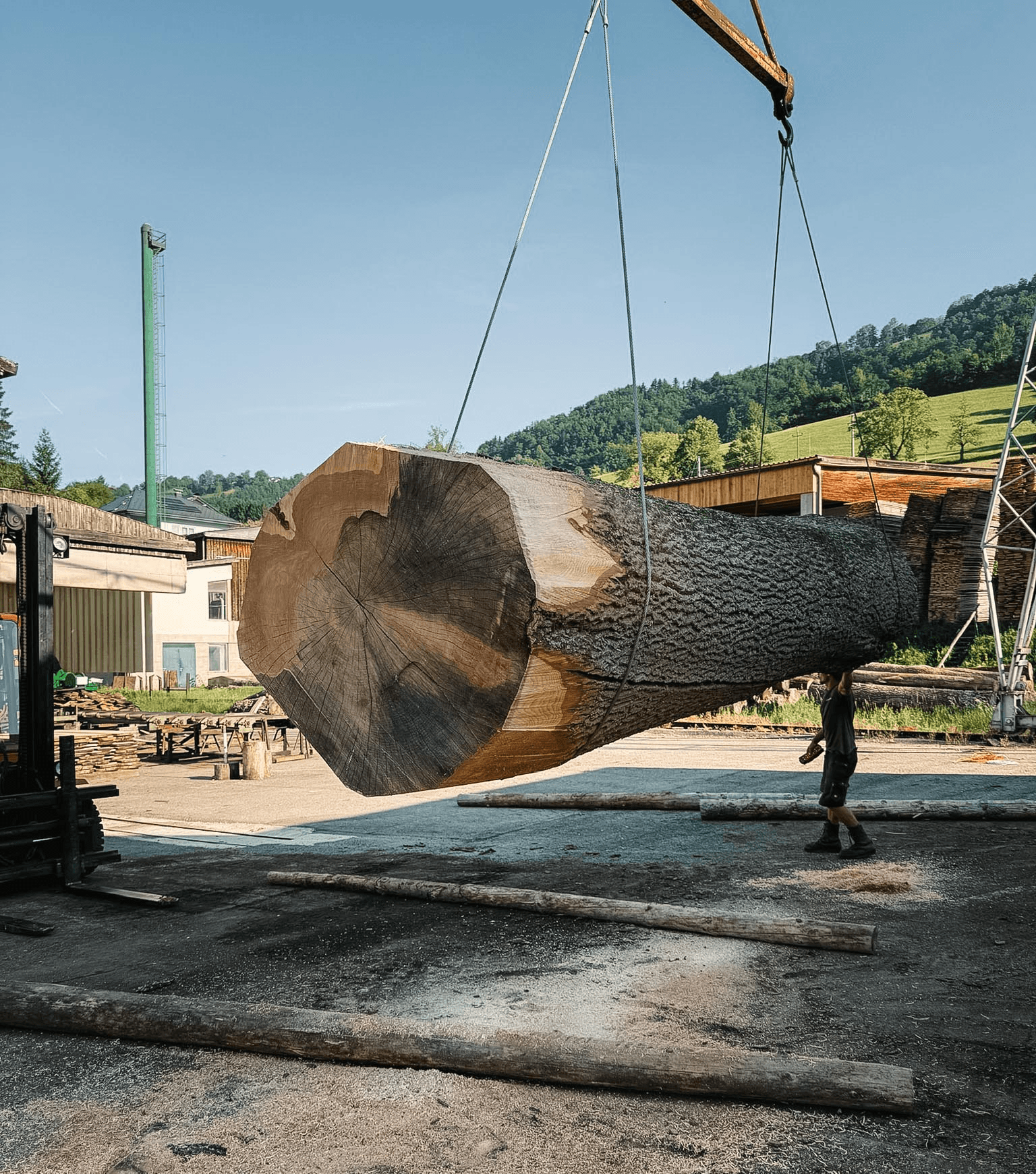 Alles beginnt im Wald. Wir wählen unsere Stämme mit größter Sorgfalt aus – bevorzugt aus heimischen Wäldern rund um Oberösterreich. Dabei achten wir auf Qualität, Herkunft und die natürlichen Mondphasen beim Schlagen des Holzes – für langlebige, stabile und besonders harmonische Produkte.